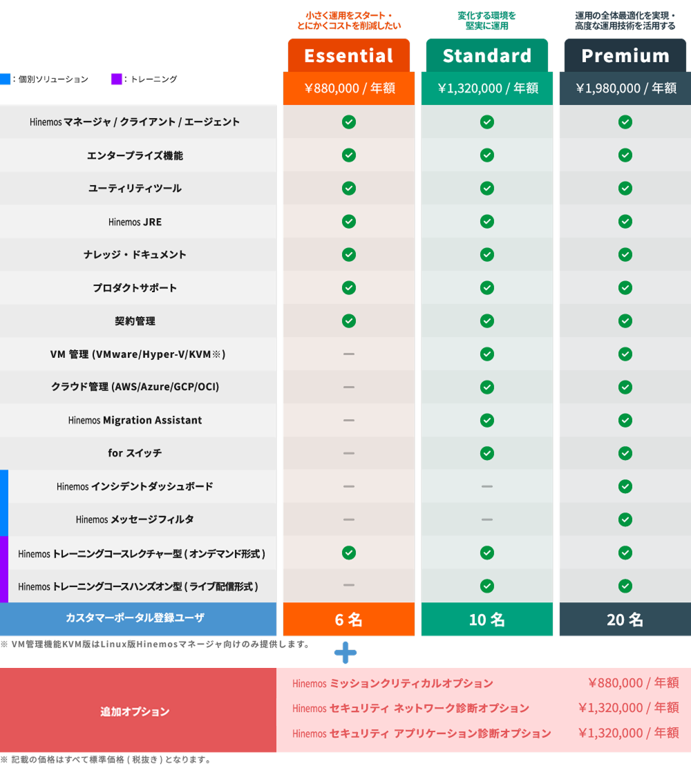| Hinemosサブスクリプション Essential Add (Linux) | ¥680,000/年 |