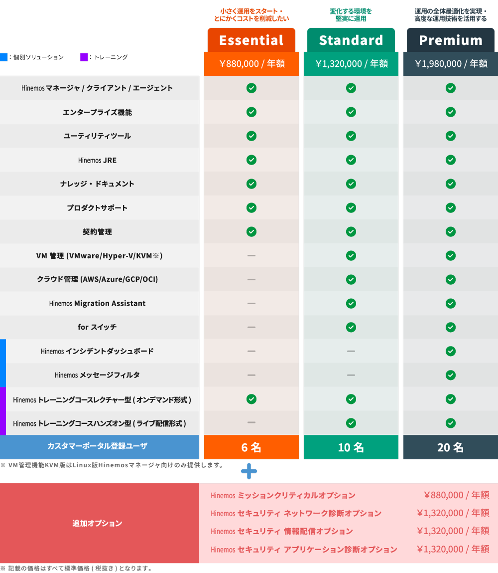Hinemosサブスクリプション Premium Add (Linux) | ¥1,780,000/年 |