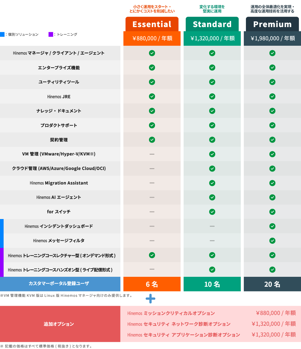 | Hinemosサブスクリプション Essential Add (Linux) | ¥680,000/年 |