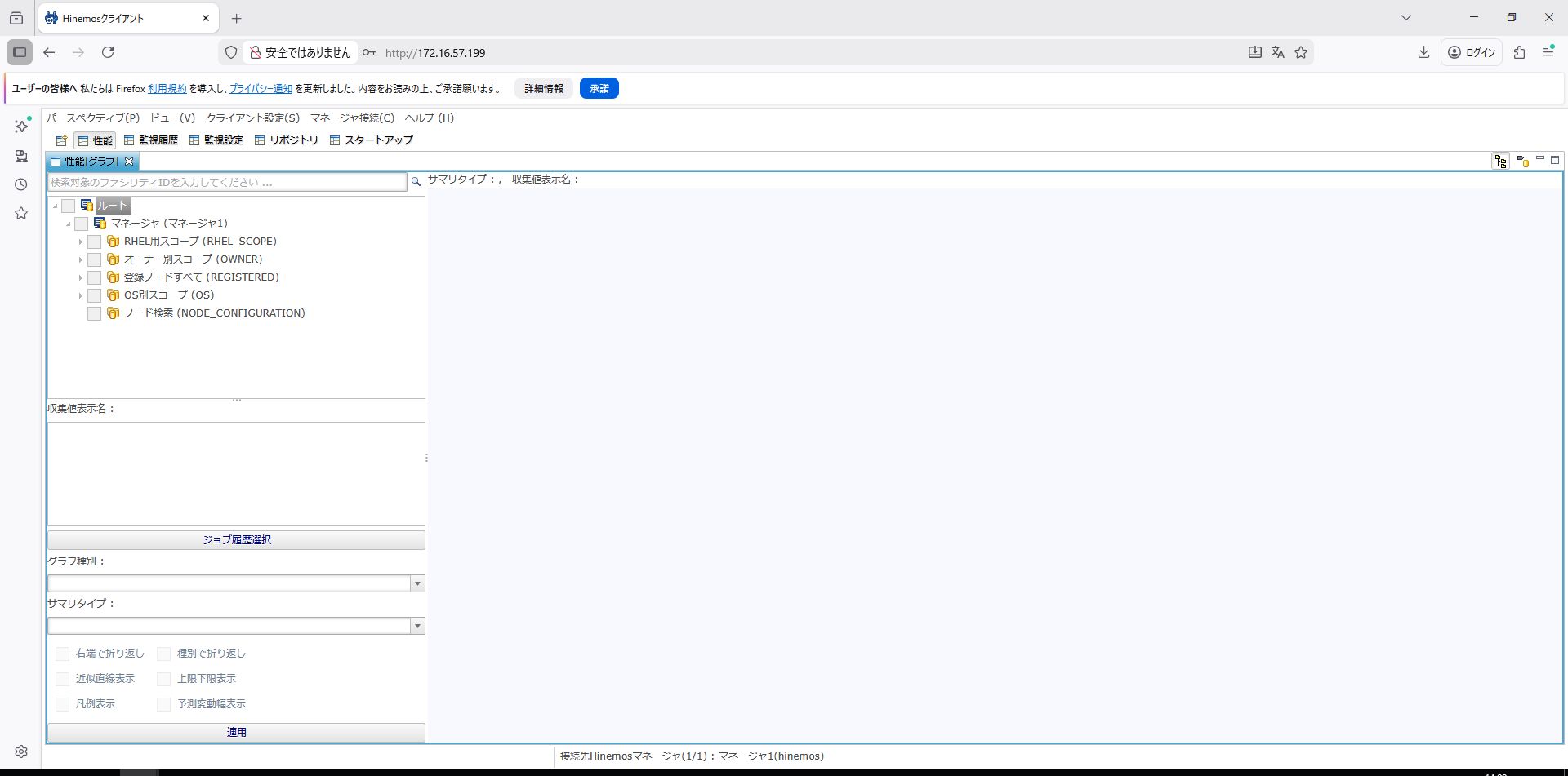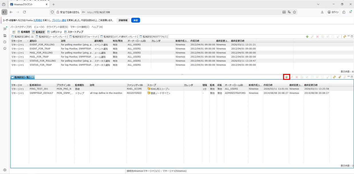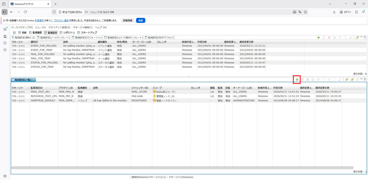 2. Hinemosクライアントを起動し、「監視設定」パースペクティブを開きます。