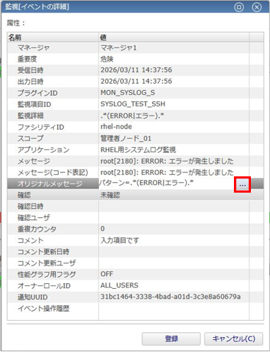 「オリジナルメッセージ」ダイアログが開き、検知したログの内容が確認できます。
