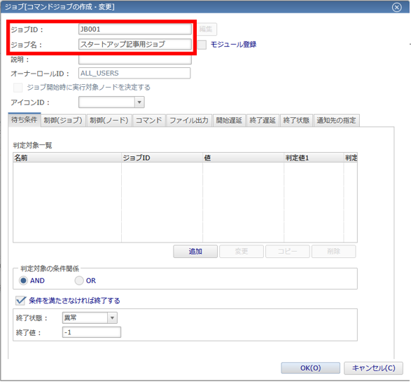 細かなジョブの制御◆本記事では設定していませんが、「待ち条件」タブではジョブを実行する条件を設定することが可能です。これを用いることで、複数のジョブを登録した際に、実行順の前後関係やジョブの待ち合わせなどを設定することができます。なお、ジョブの前後関係などを指定しない場合、ジョブは並列で実行されます。