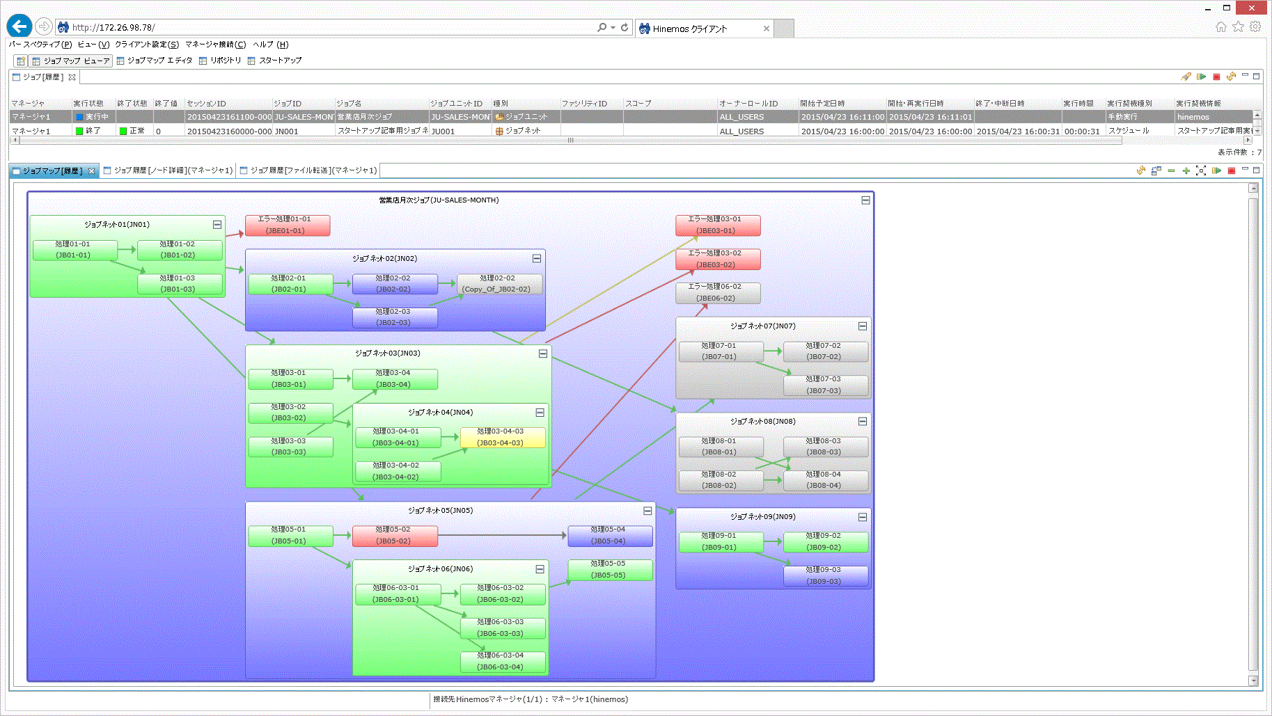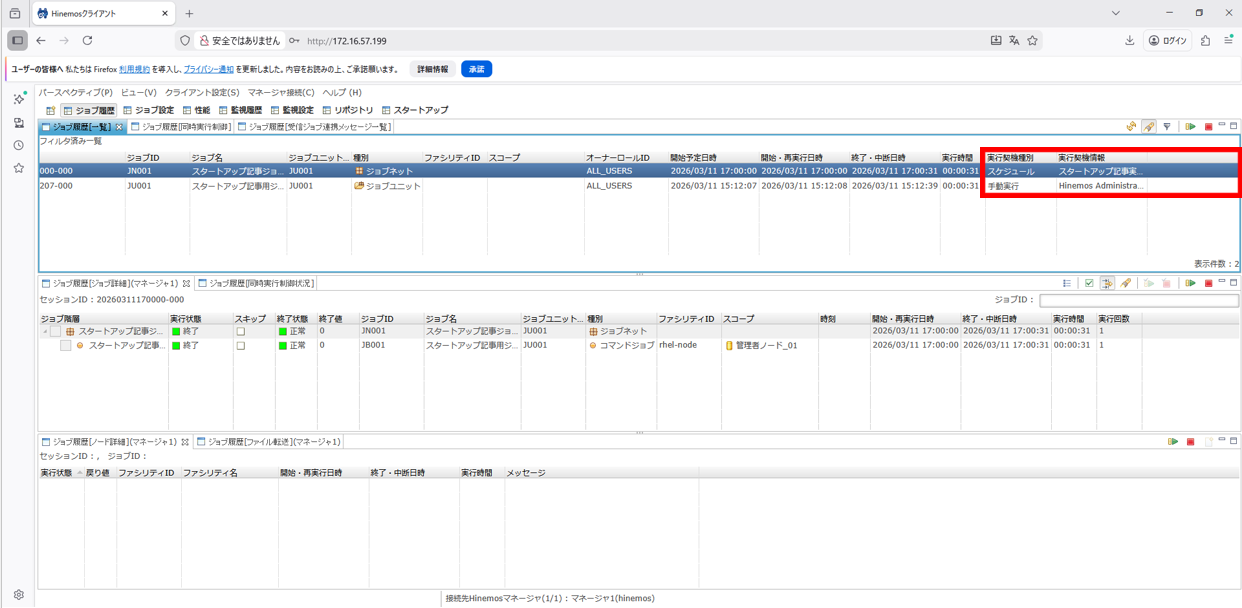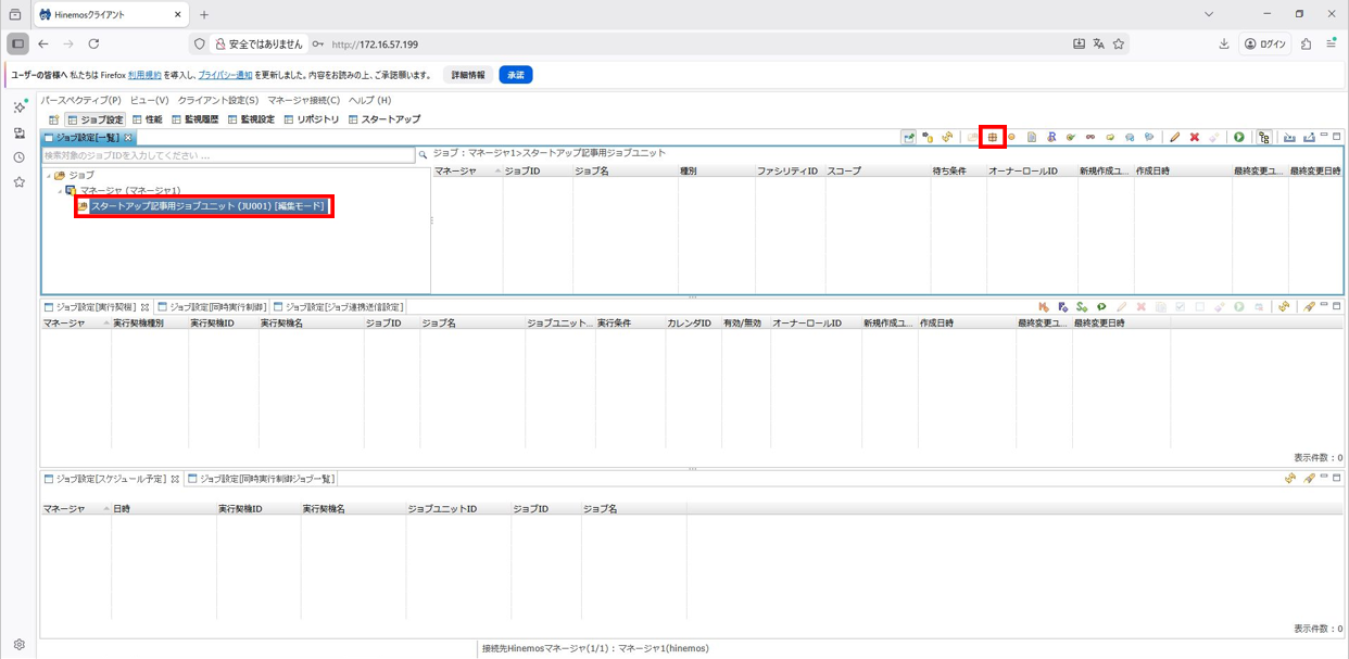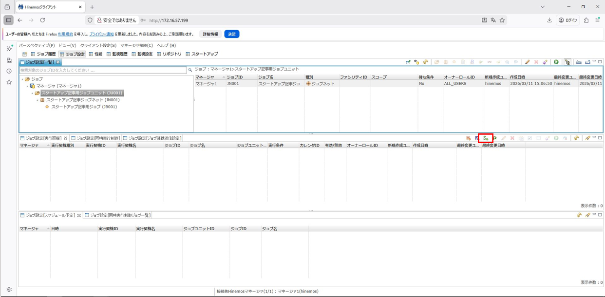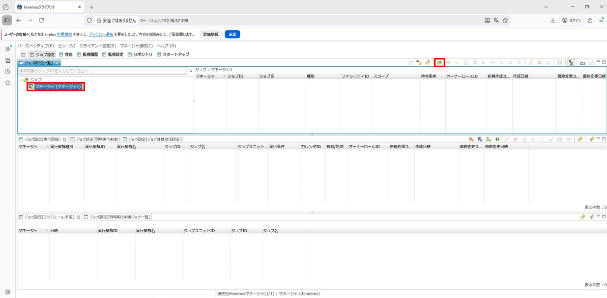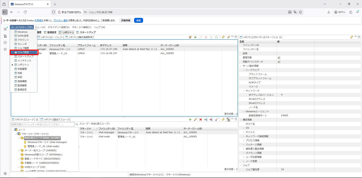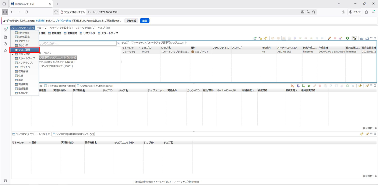 1. Hinemosクライアントを起動して、ジョブパースペクティブを開きます。
